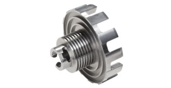 Collecting vessel with outlet and lid made of stainless steel 316L and labyrinth disk made of aluminium for connecting to FRITSCH Cyclone separators